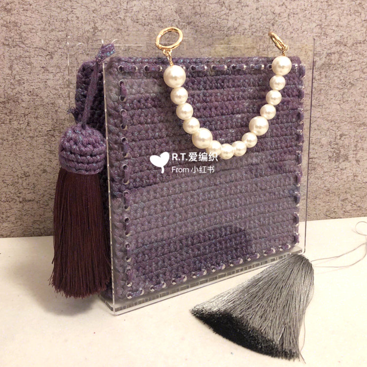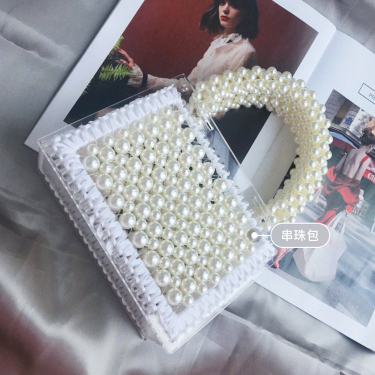 Shake the sound with transparent acrylic woven double handbag bag handmade diy small fragrance string pearl famous bag