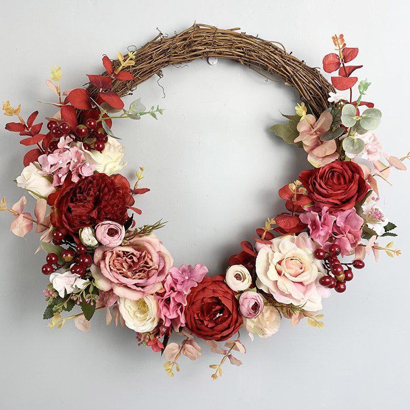 Xi square simulation flower fake flower rattan garland door hanging decoration Lintel decoration hanging wedding celebration supplies Daquan can be customized