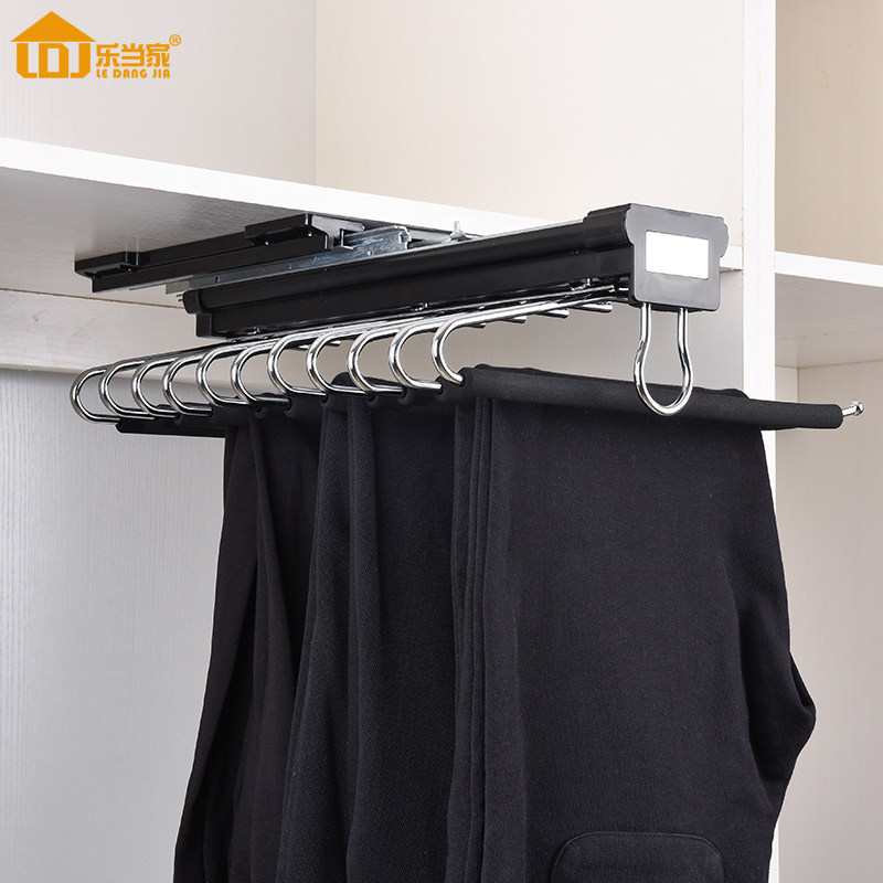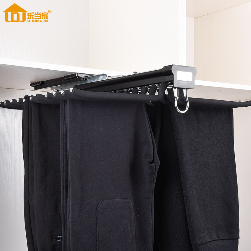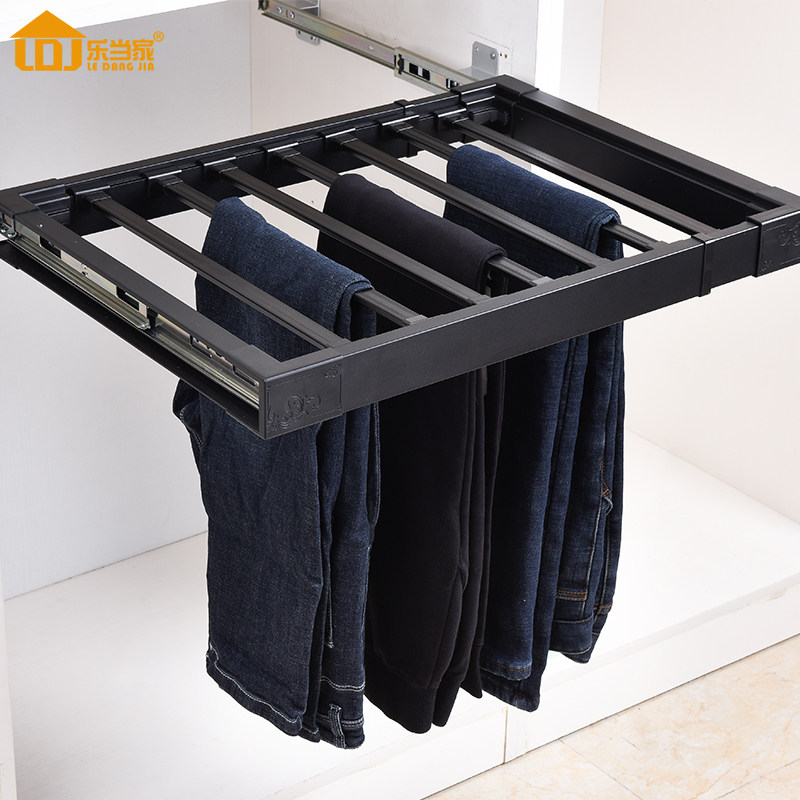 American black pants rack Telescopic drawer type household hanging pants rack wardrobe Pants side-mounted pants rack cabinet panty pumping rack