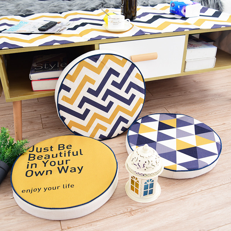 Nordic INS cotton linen cloth futon cushion round sponge cushion geometric tea ceremony round yoga cushion thickened cushion
