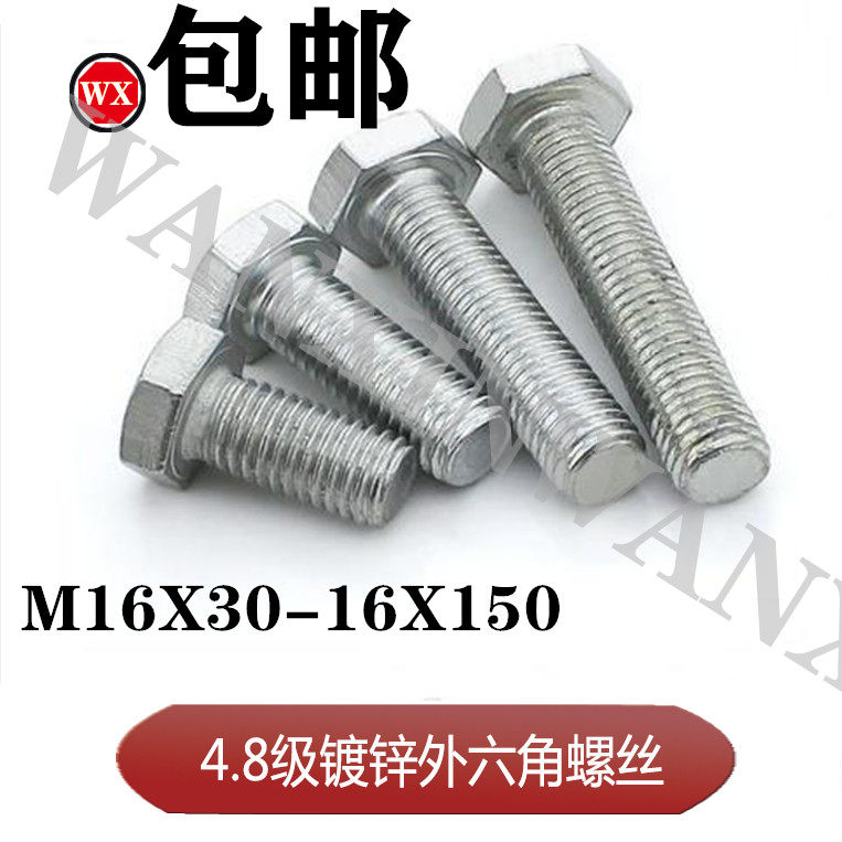 National standard 4 8 grade galvanized M16 specification hexagon screw bolt white zinc plated hexagon head class C GB5782