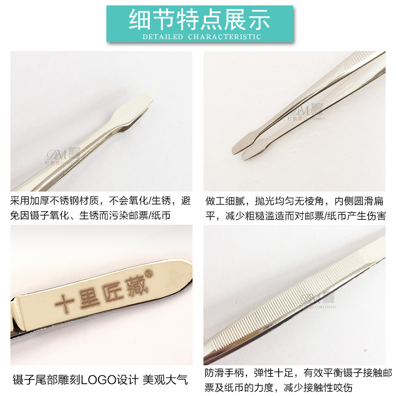 15CM flat-head thickened stainless steel philatelic tweezers Banknote Coins Stamps Collection Special Tools Philately