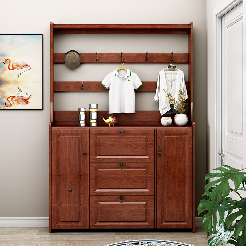Doorway shoe cabinet ultra-thin tipping bucket shoe rack solid wood minimalist modern Chinese hanging clothes hanger integrated with the door hall cabinet