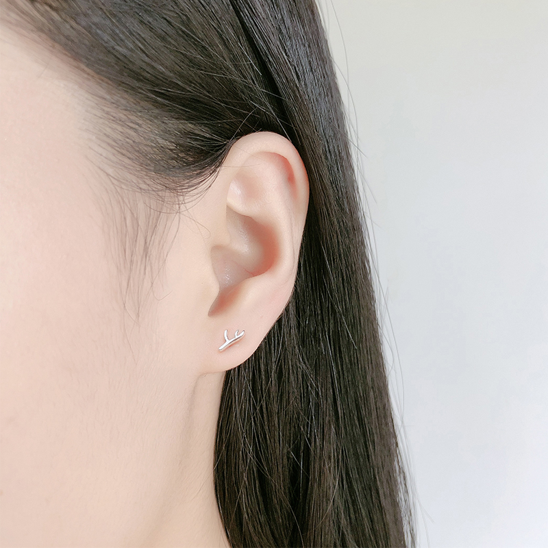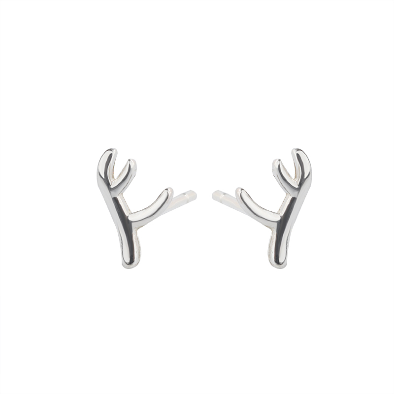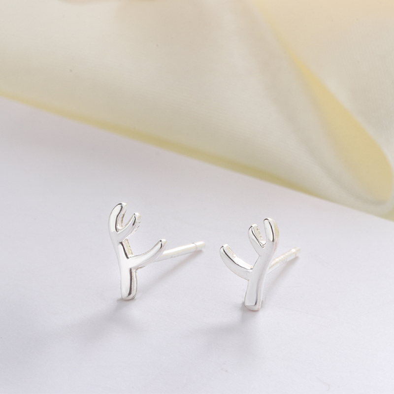 s925 sterling silver earrings elk horn ear pin female models Korean simple fresh literary student deer earrings simple silver
