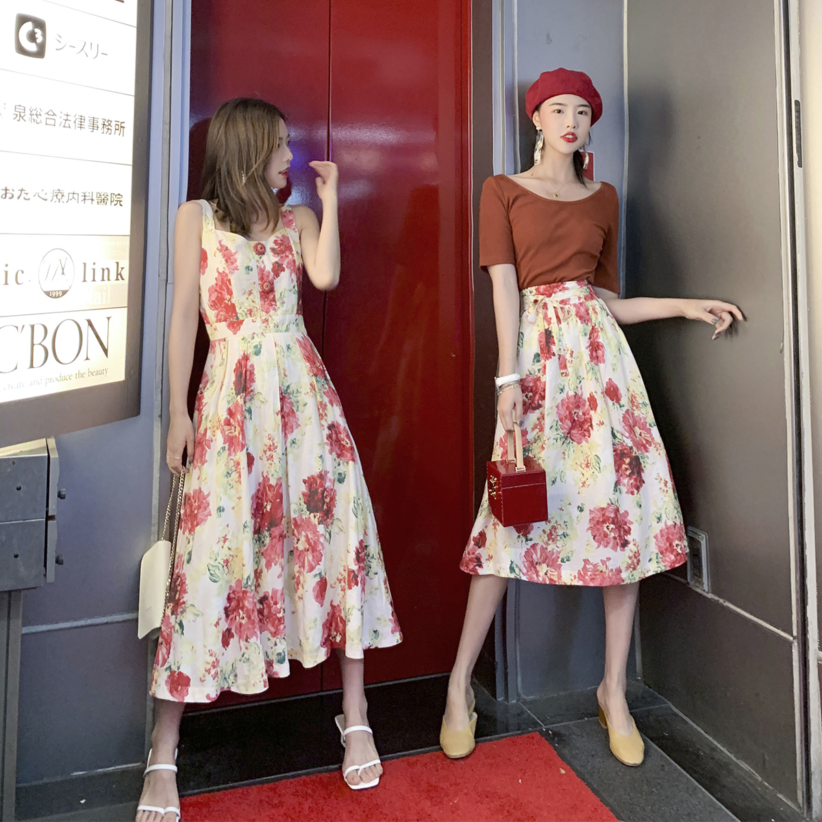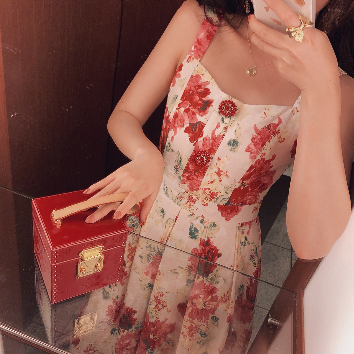 (6 Fold pick-up) Great Joy Homemade Cashew's Lean Temperament Fashion Retro Print Harnesses Long version of the dress