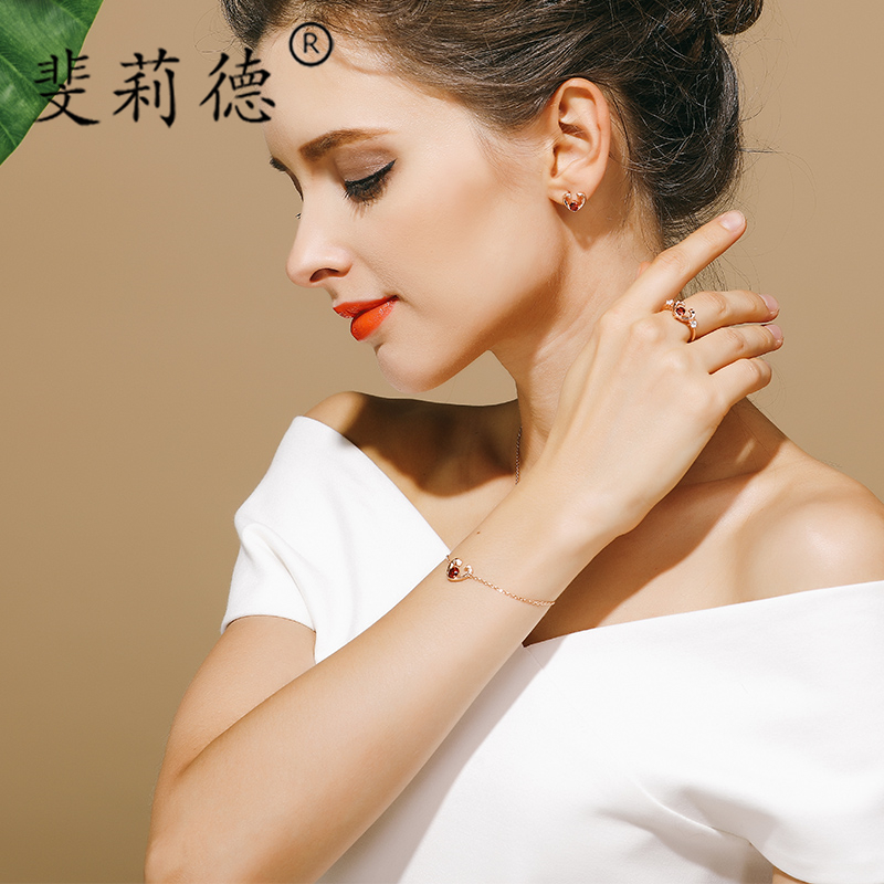 Day-style light and luxurious long-distance love Handmaid Tidal Pure Silver Pomegranate Stone Advanced Sensation Small crowdsourced Temperament Hands to Gift Girlfriend Gift