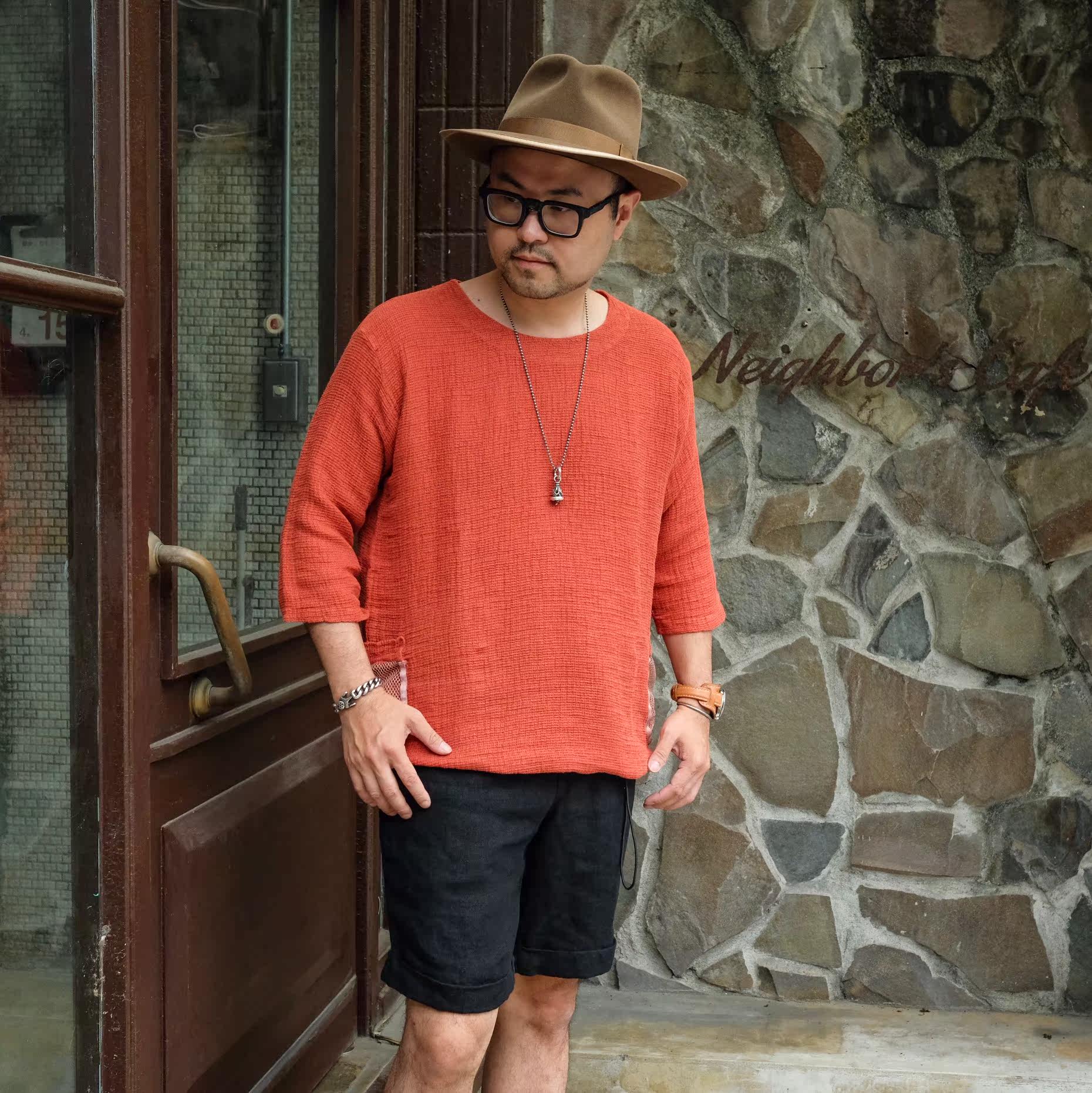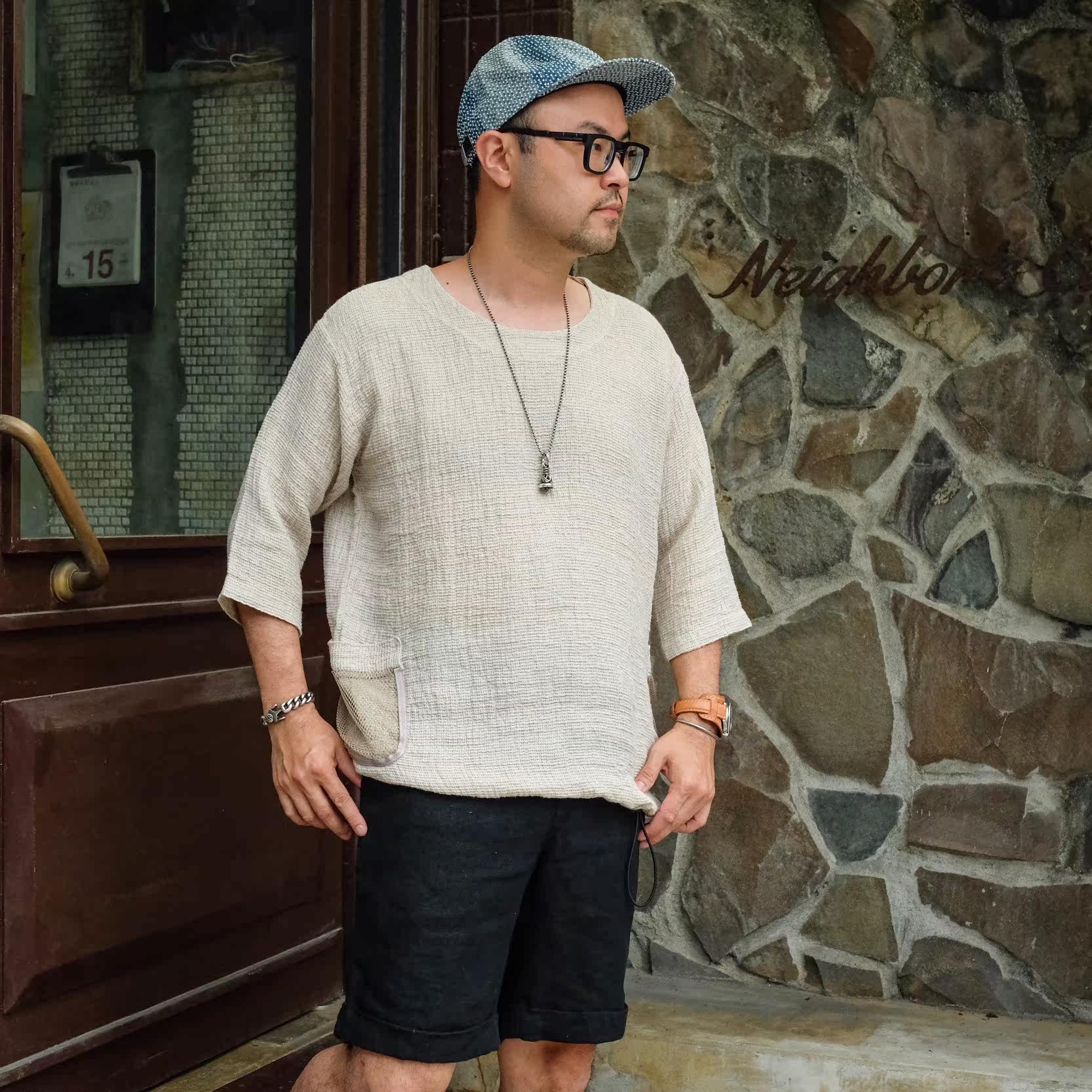 Spring and summer new Nissan GypsySons pure linen light and comfortable retro casual fisherman 5-point sleeve T-shirt