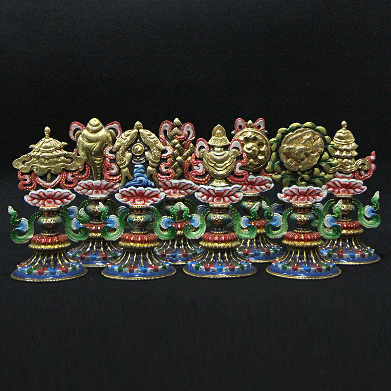 Nepalese Tibetan-style copper painting eight auspicious eight auspicious objects ornaments Tibetan Tantric ritual eight treasures ornaments - Taobao