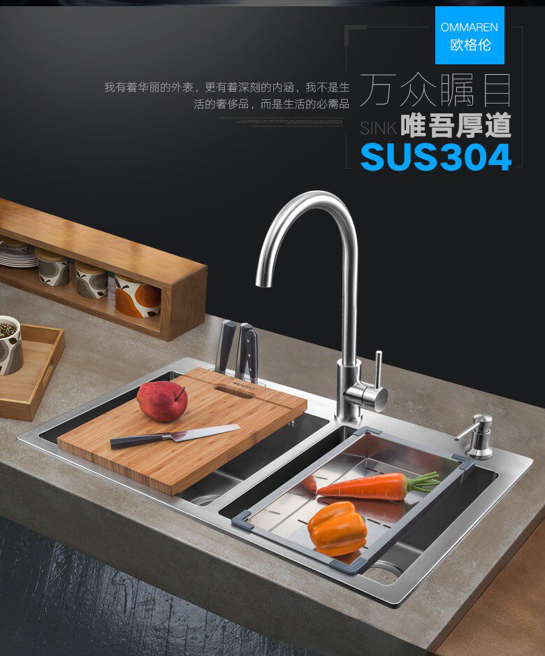 HIGOLD HUMPLEY KENGED HOME 304 stainless steel double sink handmade dishwasher tank 953068