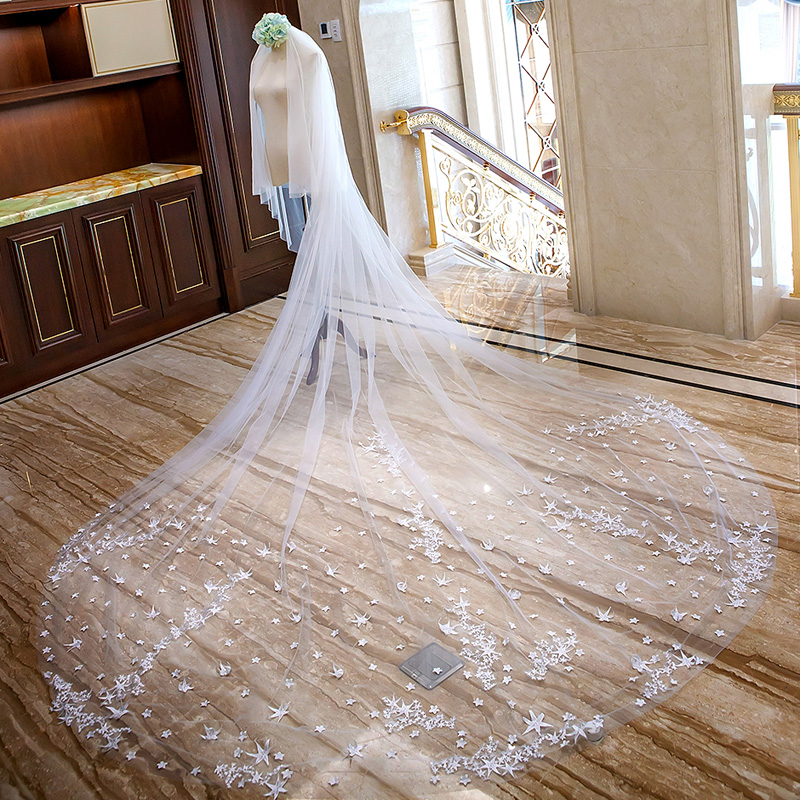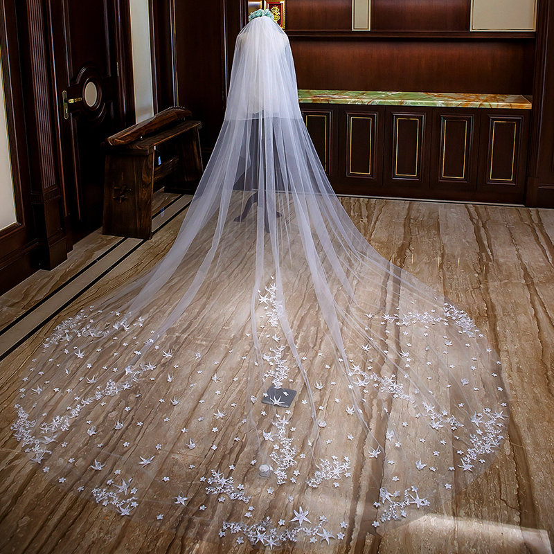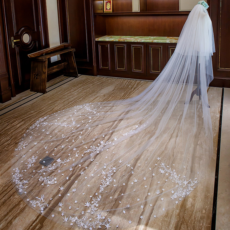 Champagne starred head yarn female brides super-long trailing wedding dresses wedding dresses headwear head decorated with long version of supersenssen white