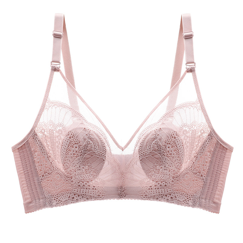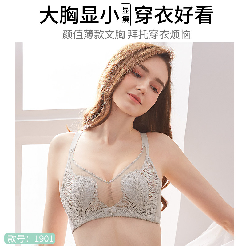 Big breasts show small underwear women's new 2020 hot style no steel ring ultra-thin fat mm large size underwear summer gather bra