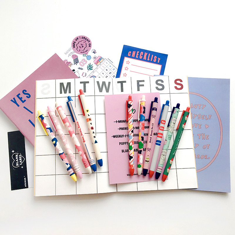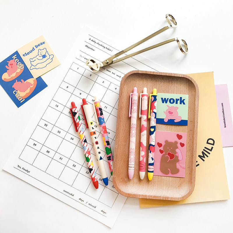 Spot) Korean girl heart super cute cartoon pattern 0 4mm black pink red smooth plastic ballpoint pen