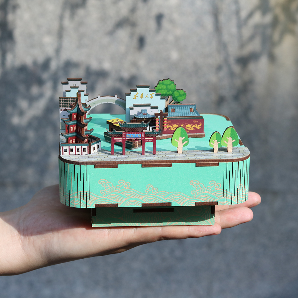 Nanjing theme assembly children's music box puzzle DIY music box Birthday gift Nanjing Pioneer Bookstore
