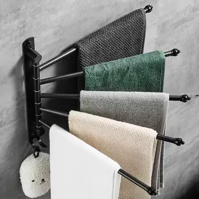 Punch-free rotating towel rack powder room stainless steel movable towel bar folding activity three or four towel hangers