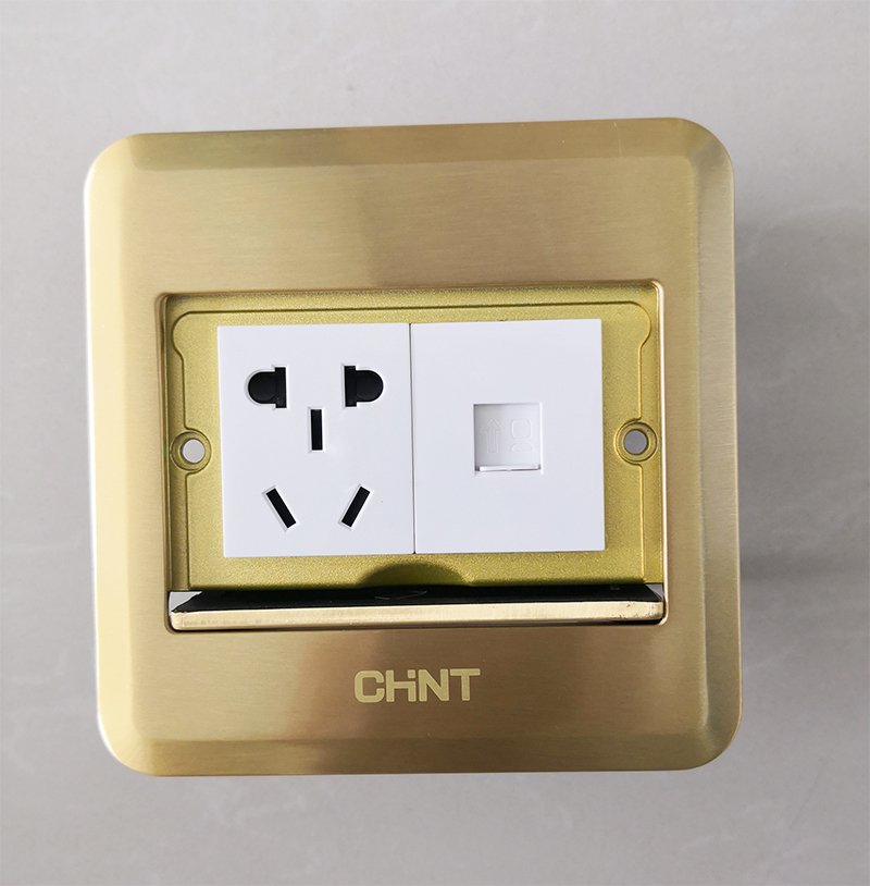 Chint ground plug network Chint NED3 floor socket five-hole with network all-copper flat push ground plug
