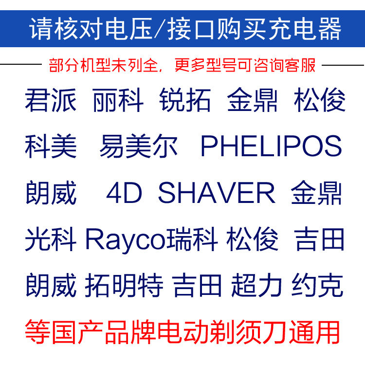 4D SHAVER Electric Razor Charging Wire General Jinding Guangke Rayco Ruike Songjunkemei