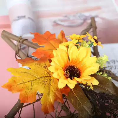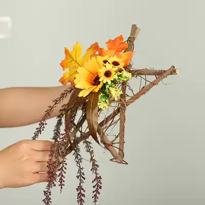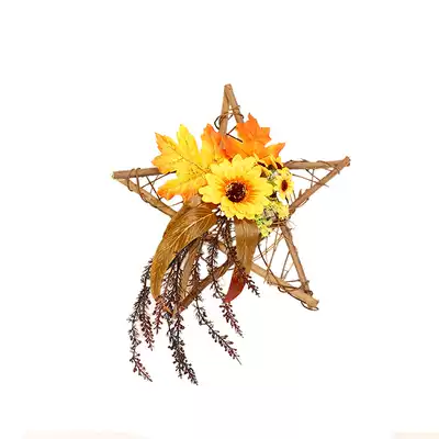 Sunflower door decoration wall wall decoration home Forest creative sunflower simulation wreath Wood pentagonal star decoration
