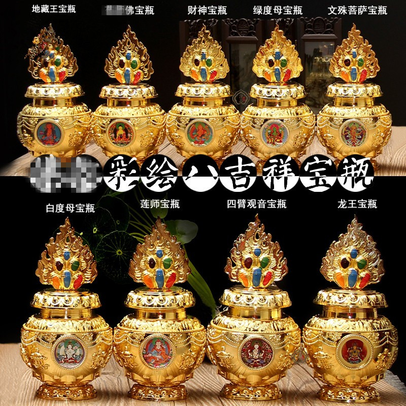 Zang God of Wealth treasure bottle painted auspicious eight treasures gold-plated alloy treasure bottle Tibetan dragon king treasure bottle ornament small