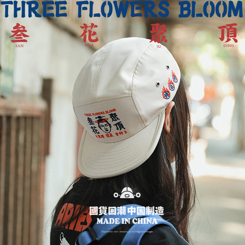 Oriental gift three flowers Ju Ding original embroidery cap spring and summer white simple baseball cap creative gift