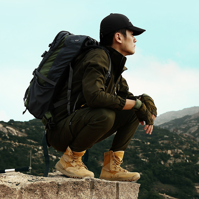 Mountaineering shoes men's high tube spring and summer waterproof non-slip outdoor hiking cross-country travel breathable lightweight leather desert boots women