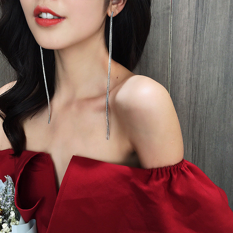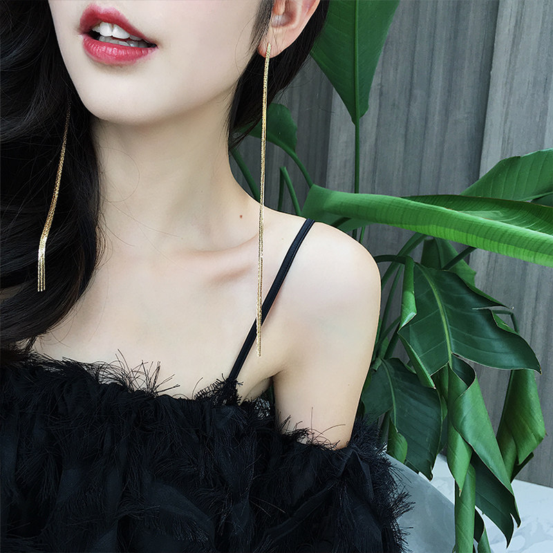 Star with the same tassel earrings show face thin sterling silver earrings temperament long version earrings earrings new net red tide super fairy