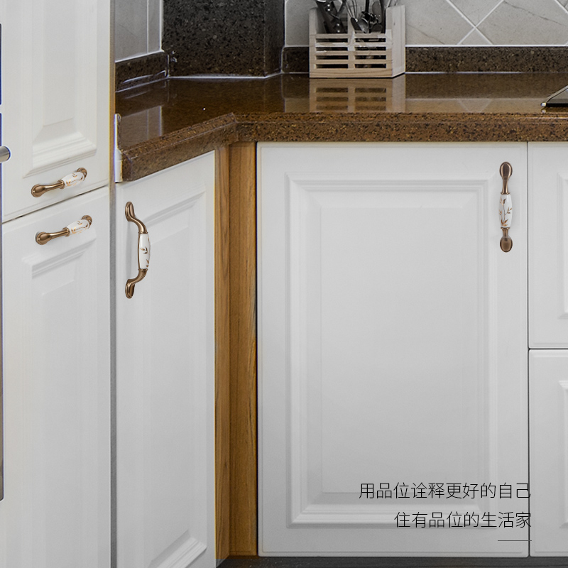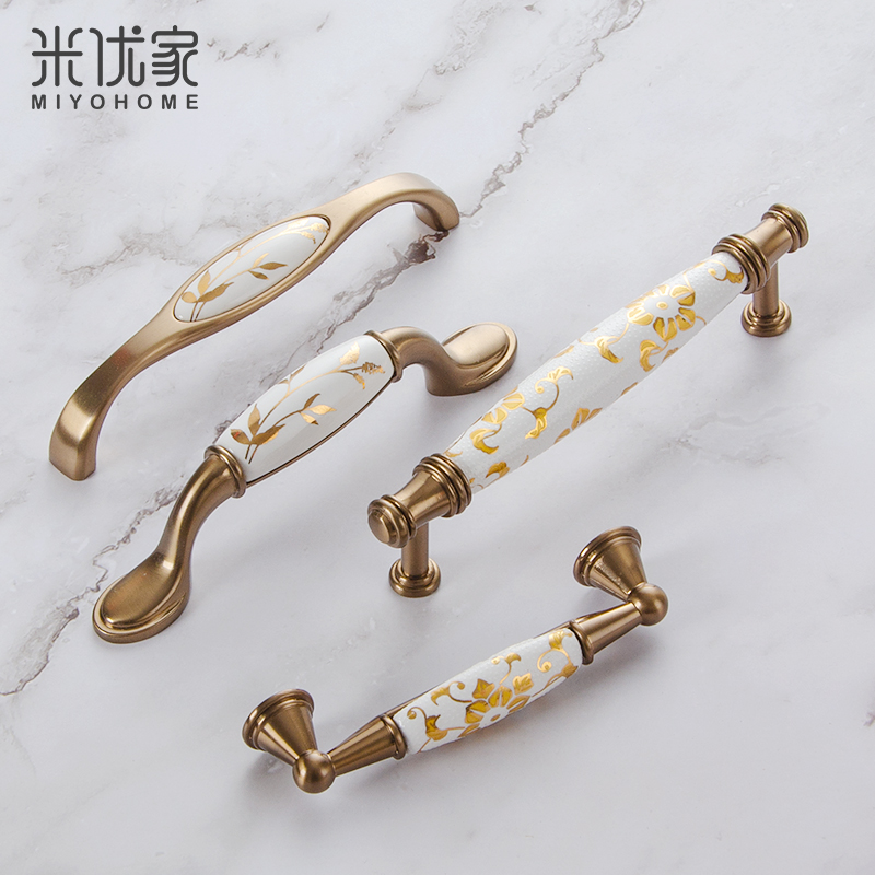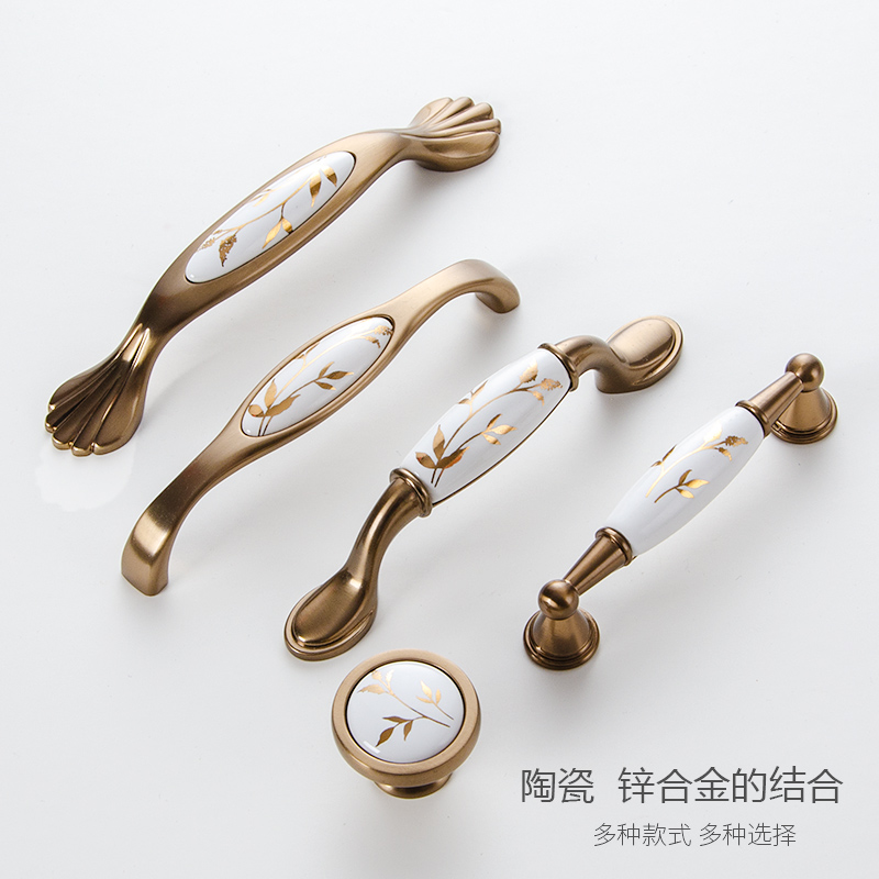 Chinese style overall cabinet gold handle New Chinese style furniture cabinet door ceramic handle light and luxurious European-style drawer wardrobe door handle