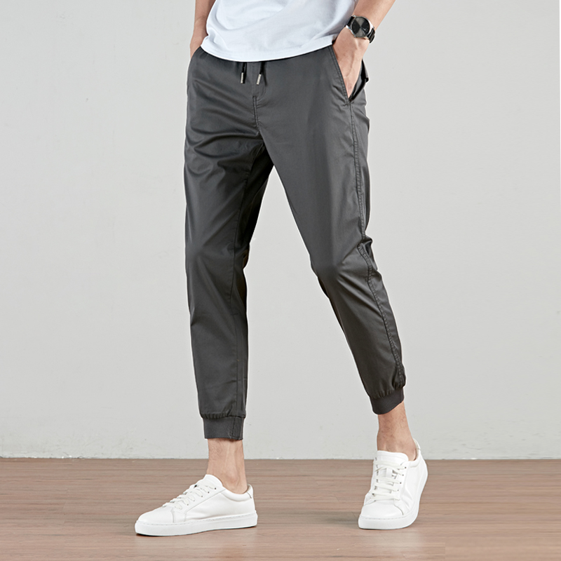 Men's summer ninth casual pants tide brand slim large size small feet elastic waist breathable Korean sports pants
