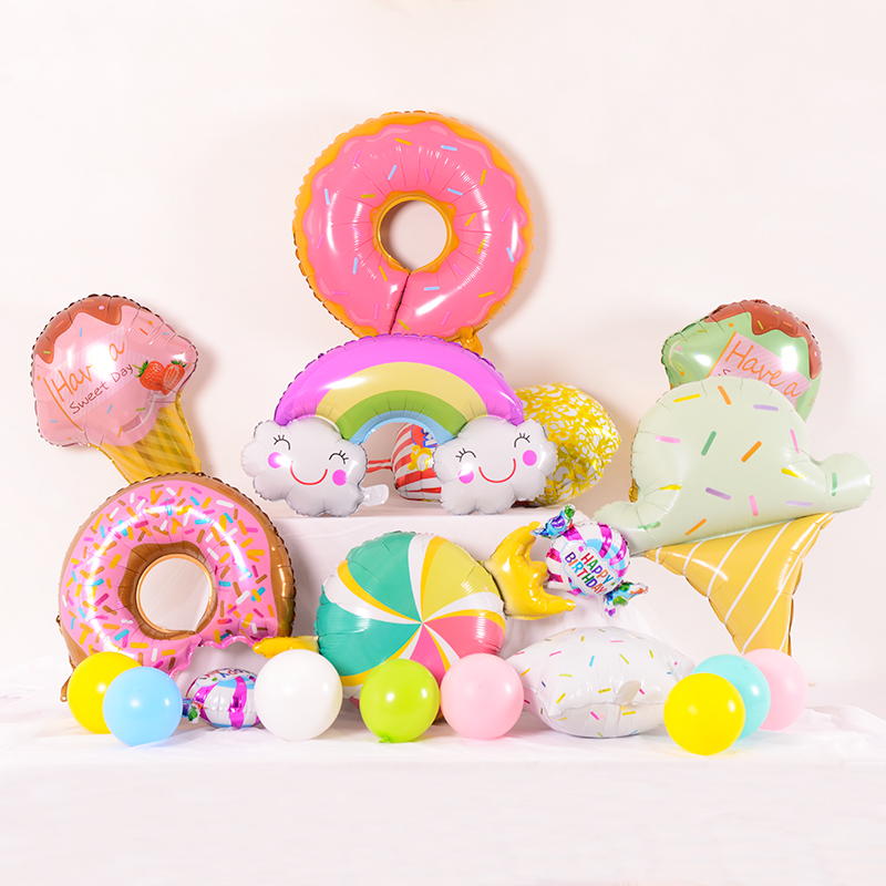 Donut birthday decoration balloon children's birthday full moon cartoon fruit aluminum film balloon year-old baby clothing decoration