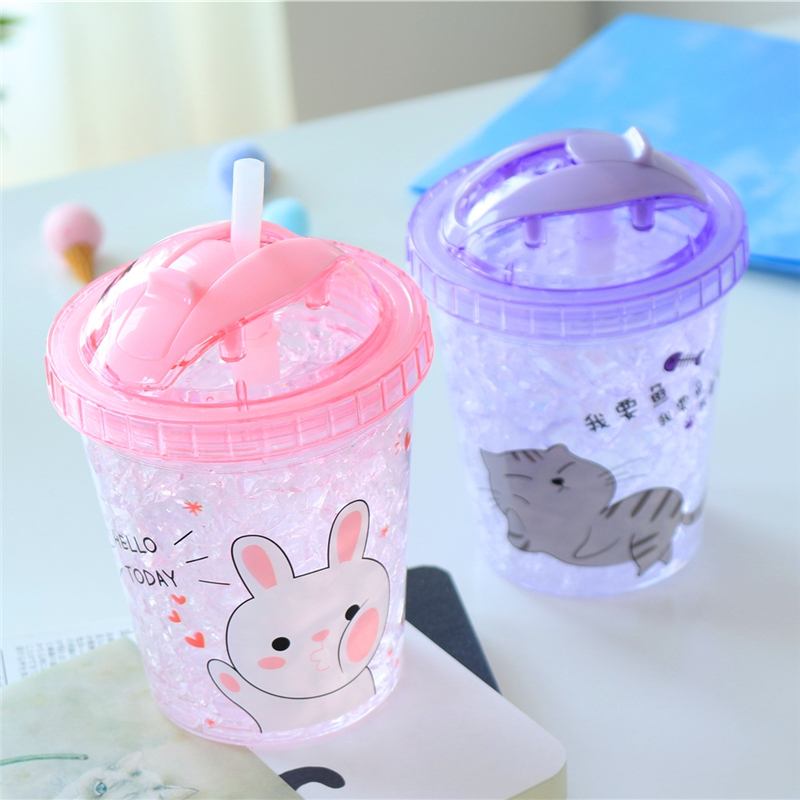 Net Red Summer Break Ice Cup Straw Cup Fresh Schoolgirl Brief Korean version of the water glass Cute Ultra Cute Home Ice Town Cup