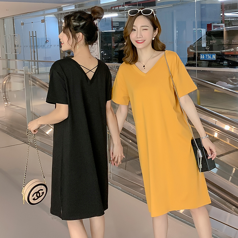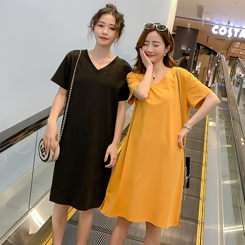 Pregnant woman V-collar dress 2022 new Korean version loose fashion summer clothing T-shirt with a pregnant mother summer dress