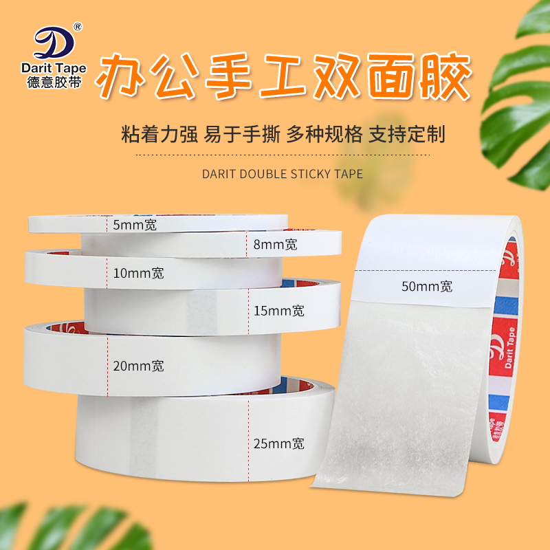 Deyi tape Ultra-thin high-viscosity white tissue paper double-sided tape Office stationery wall decoration double-sided tape Student kindergarten manual paste Easy-to-tear portable double-sided tape