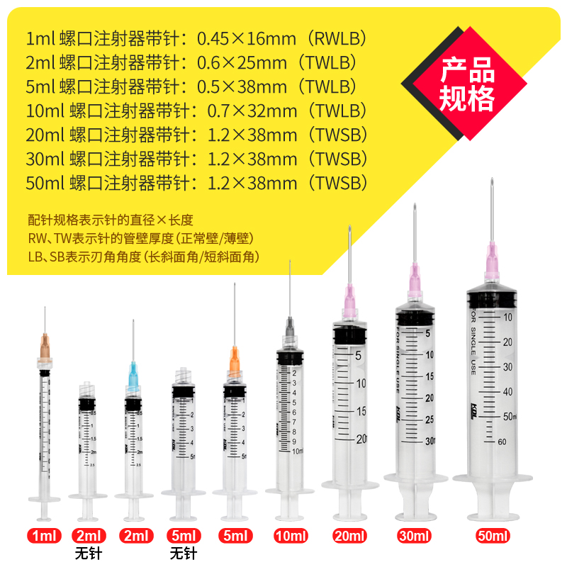 2 KDL spires 1 ml with needle 0 45 * 16mm 2 KDL screw mouth 2 ml with needle 0 6 * 25mm 2 KDL screw mouth 5 ml with needle 0
