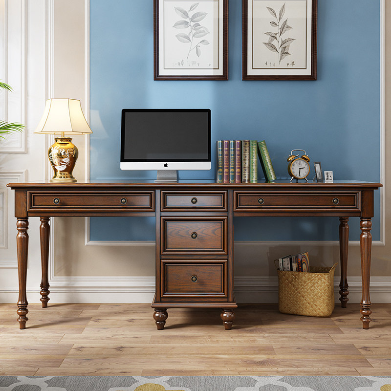 American country solid wood desk ash wood children's student desk study two-person computer desk office chair furniture