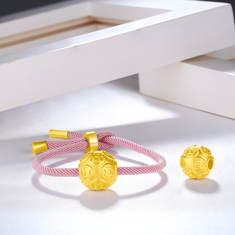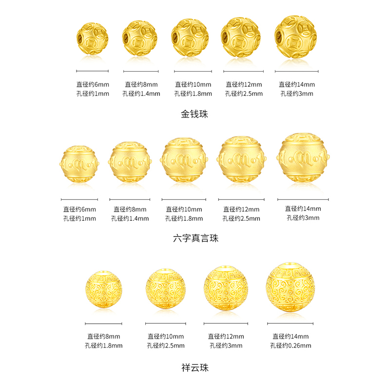 Six words true words gold transshipment pearl 999 foot gold 3D hard gold pure gold road pass string of beads handmade female leather rope