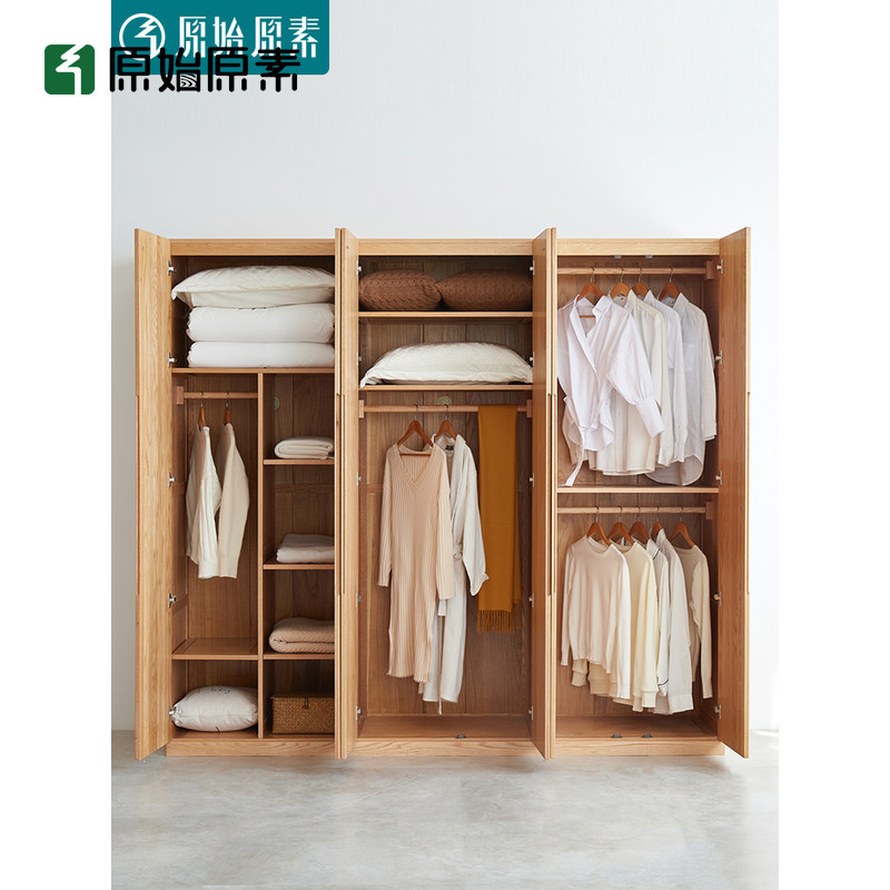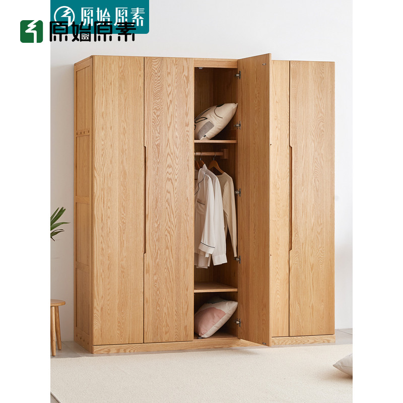 Original element solid wood wardrobe modern minimalist cabinet oak five-door storage cabinet hanging wardrobe large wardrobe A4044