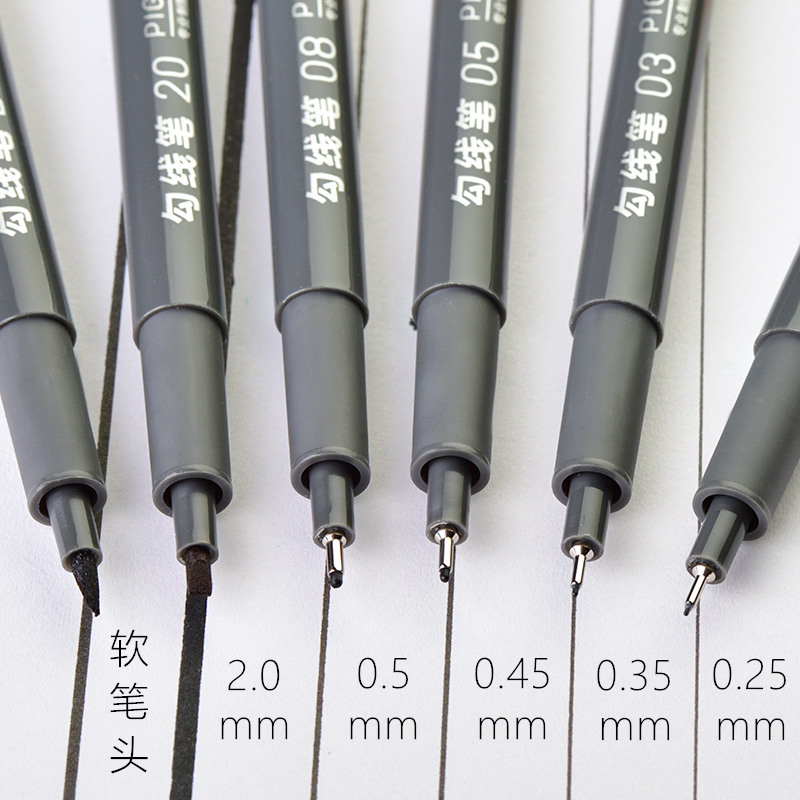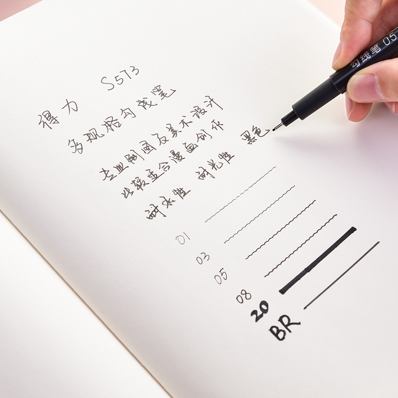 Del S573 needle hook line Pen students with brush stroke drawing line special needle tube Pen Waterproof Hook Pen art animation hook edge pen 6 sets