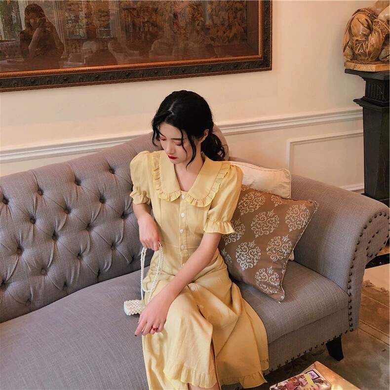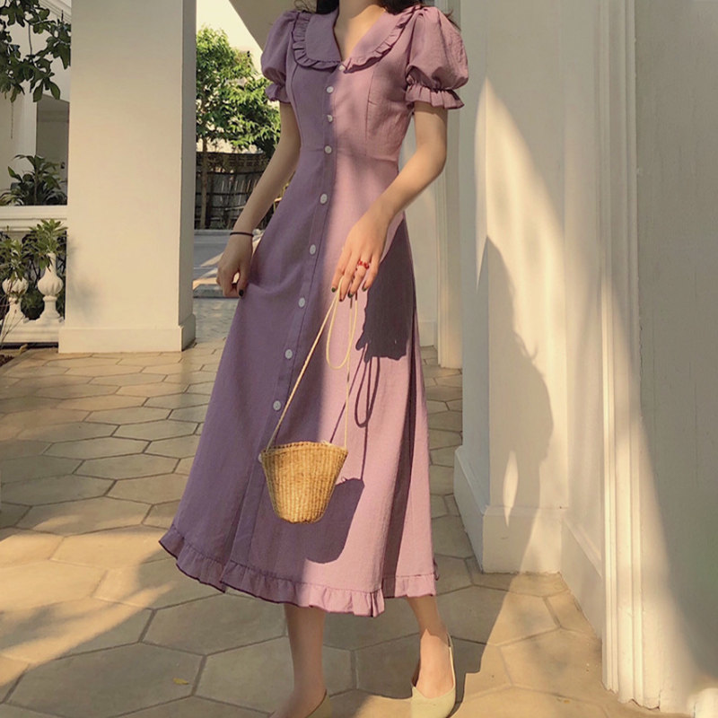 Balloon Flower Wisdom Lavender Style Retro Past Knee Super Fairy sensational sweetness and high waist French small crowdskirt summer