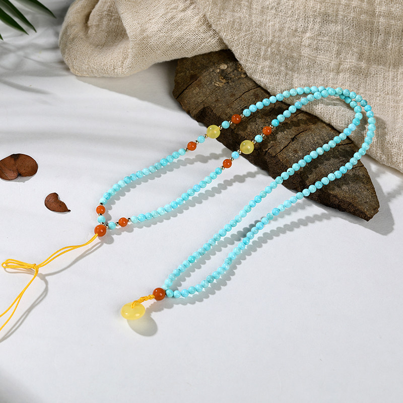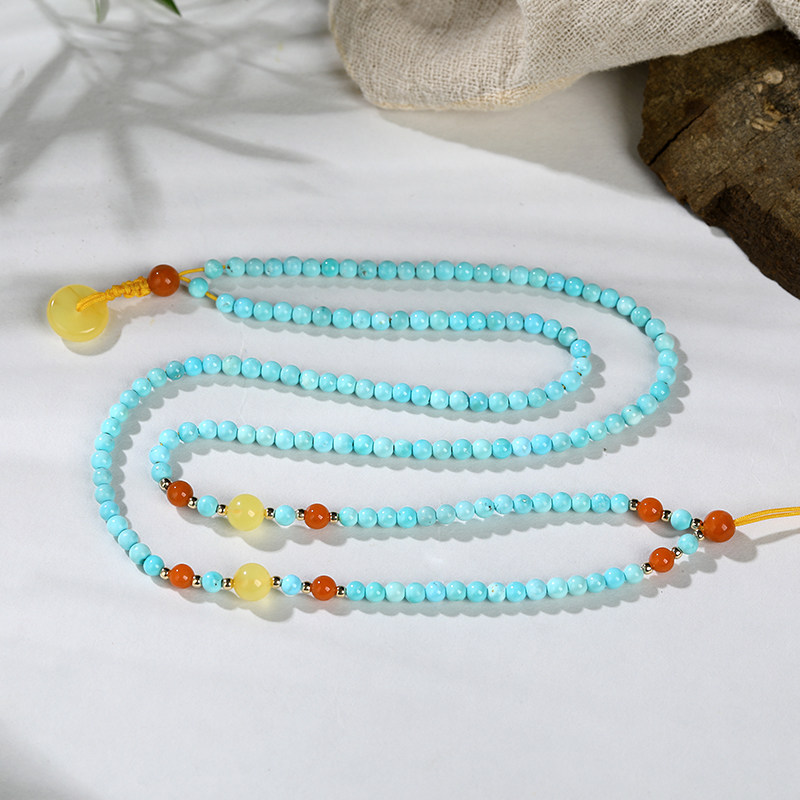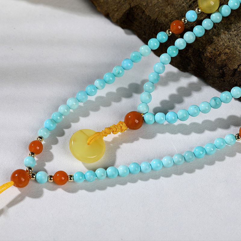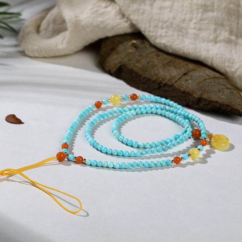 Oucini natural beeswax handstrings for men and women with original stone chain turquoise Amber round beads