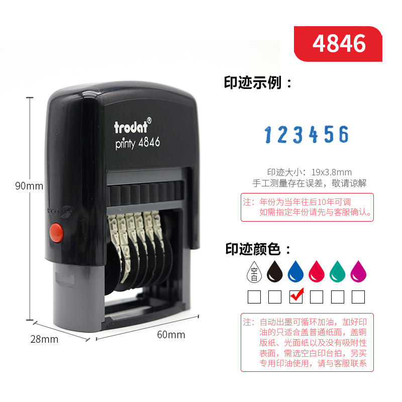 Adjustable Zhuoda 4846 automatic ink return digital seal word height 4MM 6-digit seal code machine number seal