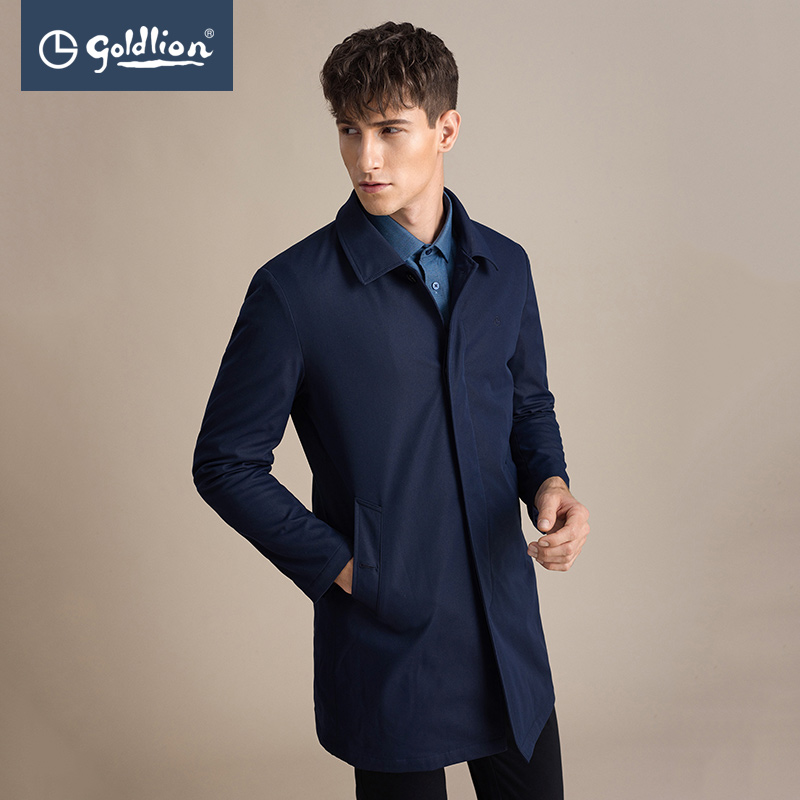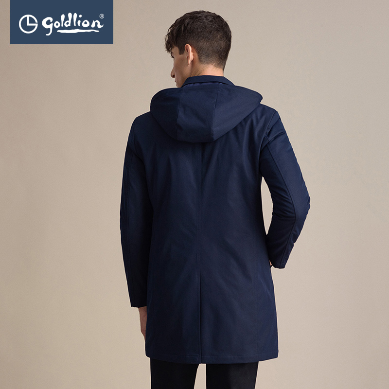 Jinlilai autumn and winter men's anti-splashing water twill fabric warm lapel removable cap mid-length cotton coat Hui]