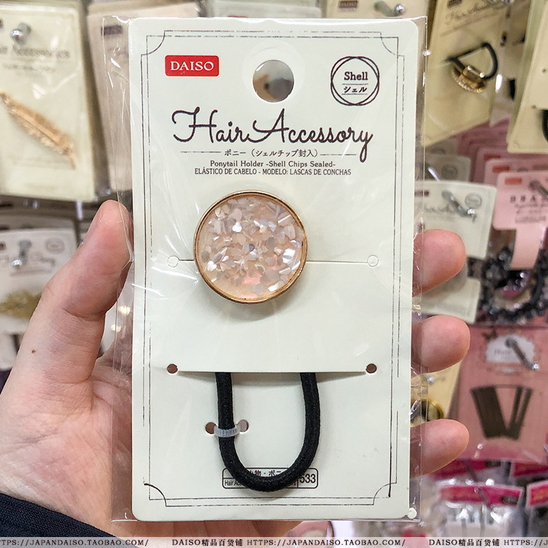 Japanese Grand Creation DAISO Cute Temperament Pink Round Glitter Crystal Sequin Hair Circles Hair Ring Hair Accessories Leather Fascia
