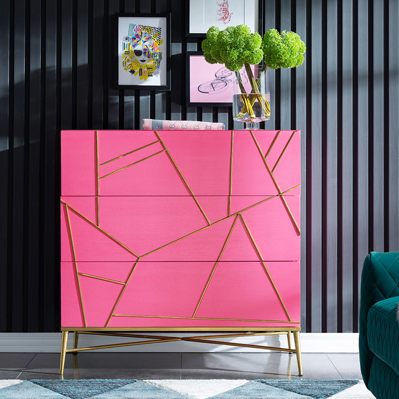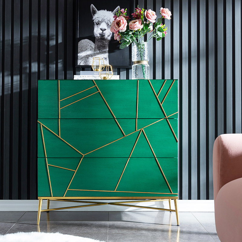 Light luxury bucket cabinet solid wood living room decoration cabinet post-modern simple bedroom locker Italian porch chest of drawers
