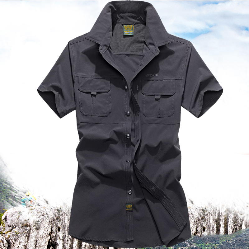 Summer outdoor elastic speed dry shirt male breathable waterproof quick dry short sleeve shirt large size wear resistant male clothing