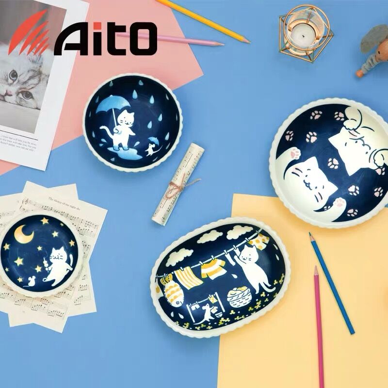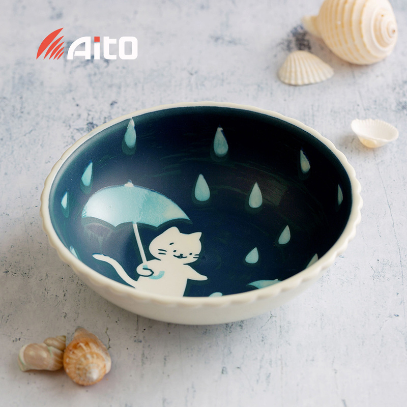 Japan Import Dishes DISH SUIT AITO CARTOON KITTY PATTERN SMALL BOWL MEO-THICK BURNT CERAMIC DEEP MOUTH DISH HOME RICE BOWL