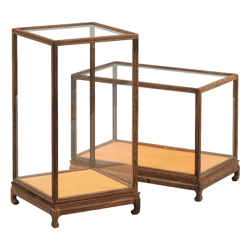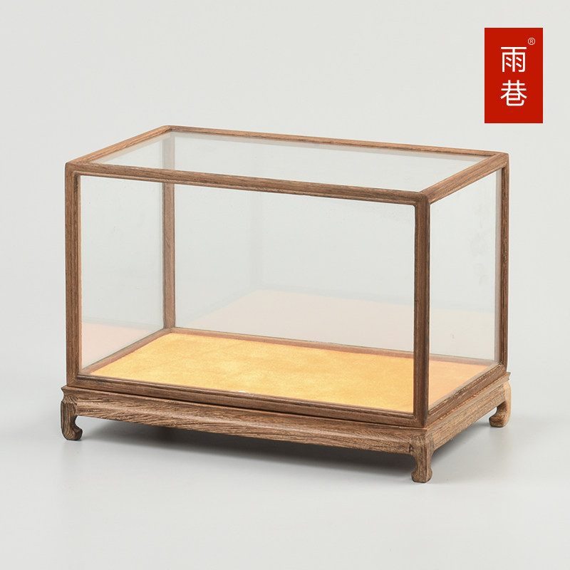 Red Wood Engraving Chicken Wings Wood Buddha Statue Glass Hood Handicraft Swing Accessories Dust Cover Transparent Display Case Guanyin Bottle Pagoon