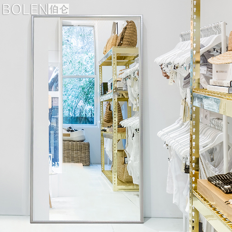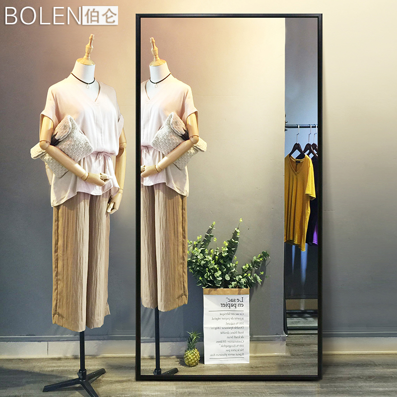 BOLEN clothing store fitting dress mirror household aluminum alloy thin full body floor mirror simple modern wall hanging