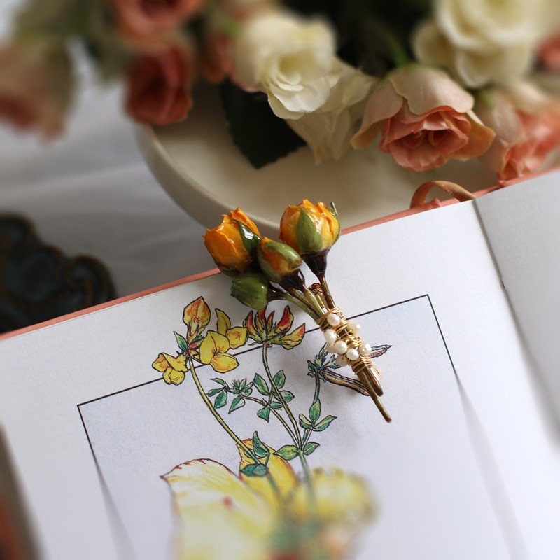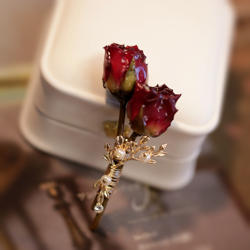 Brooch design sense niche dry flower rose coat sweater high-end corsage brooch decoration wedding accessories parents