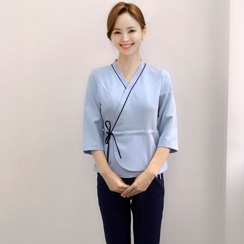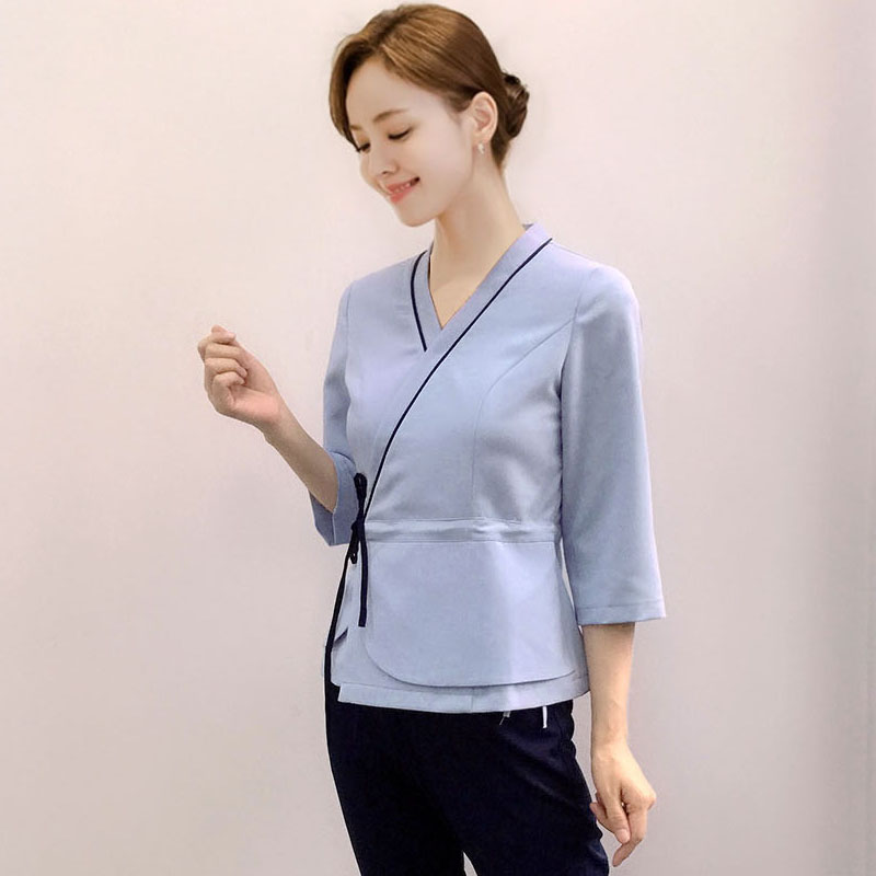 New Spring Summer New Middle Sleeve Foot Bath Suit Women Spa Clubhouse Beauty Division Work Foot Bath Technician Clothing