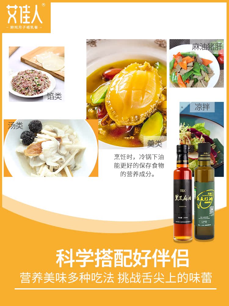 Flax oil confinement oil black sesame oil Aijia pregnant maternal edible oil flaxseed oil biochemical soup confinement meal