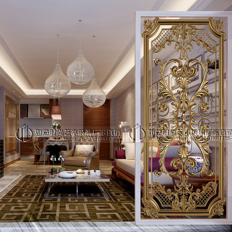 Steel Chemical Art Glass Living Room Screen Genguan Background Wall Makeup Room Frosted Transparent bifacial partition Modern European style